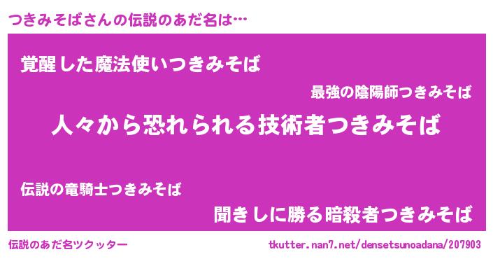 | ヘコむあだ名 | 『つきを』『つきみそば(爆)』 |