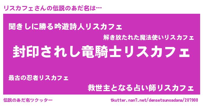 | ヒーロー風カッコイイあだ名 | 『究極戦士リスカフェ』『ネオリスカフェ』 |