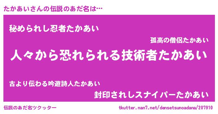 | ヒーロー風カッコイイあだ名 | 『友情の使者たかあい』『仮面タカダー』 |