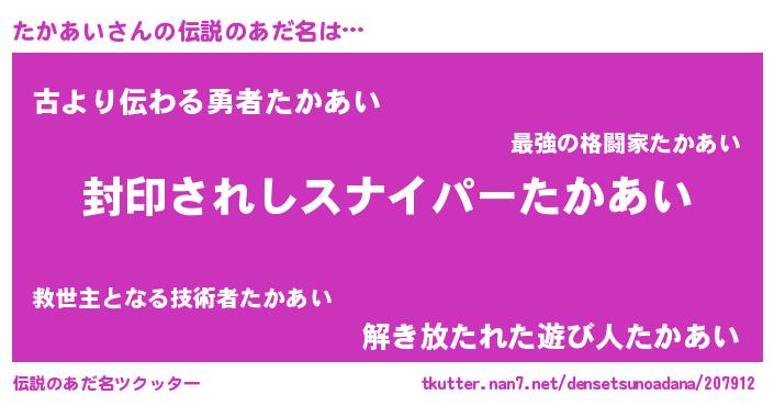| 意味不明あだ名 | 『住所不定無職たかあい(89歳)』 |