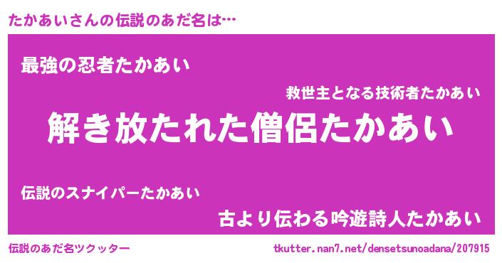 | ポケモン風あだ名 | 『タカキング』『ヒタカアイ』 |