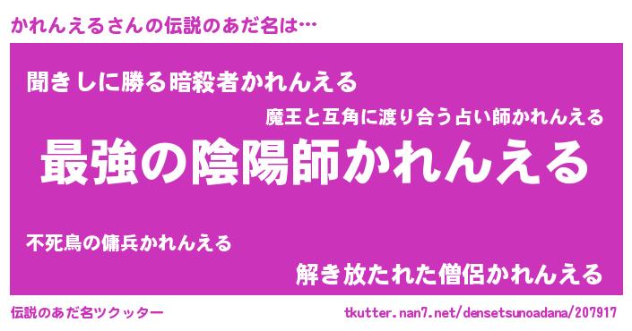 | ファンタジー風あだ名 | 『エターナルカレンエルー』『ゼカレトゥ』 |
