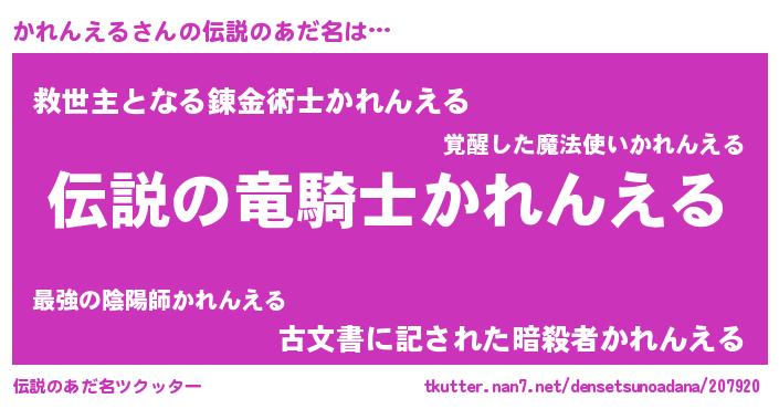 | 女子向けラノベタイトル風あだ名 | 『かれんえるアンティーク』 |