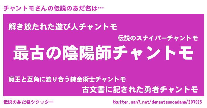 | 意味不明あだ名 | 『住所不定無職チャントモ(79歳)』 |