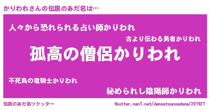 | 男性向けラノベタイトル風あだ名 | 『カリワレスレイヤー』 |