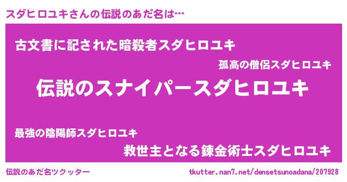 | 意味不明あだ名 | 『住所不定無職スダヒロユキ(98歳)』 |