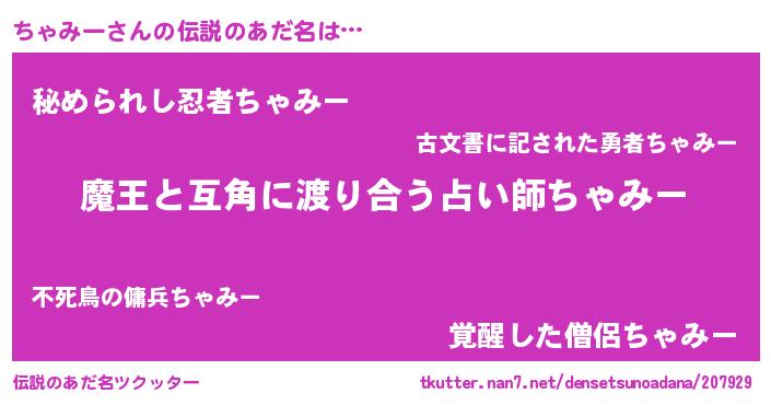 | ヒーロー風カッコイイあだ名 | 『愛の使者ちゃみー』『最強戦士チャミー』 |