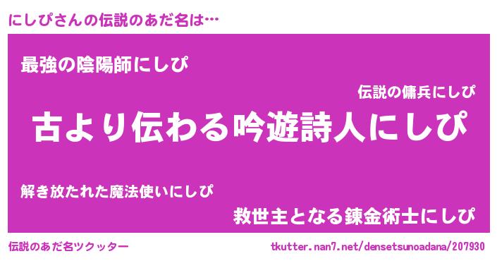 | 男性向けラノベタイトル風あだ名 | 『にしぴという概念が存在しない退屈な世界 』 |