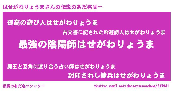 | 意味不明あだ名 | 『住所不定無職はせがわりょうま(86歳)』 |