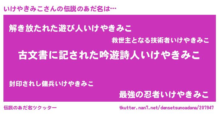 | 男性向けラノベタイトル風あだ名 | 『この素晴らしい世界にいけやきみこを!』 |