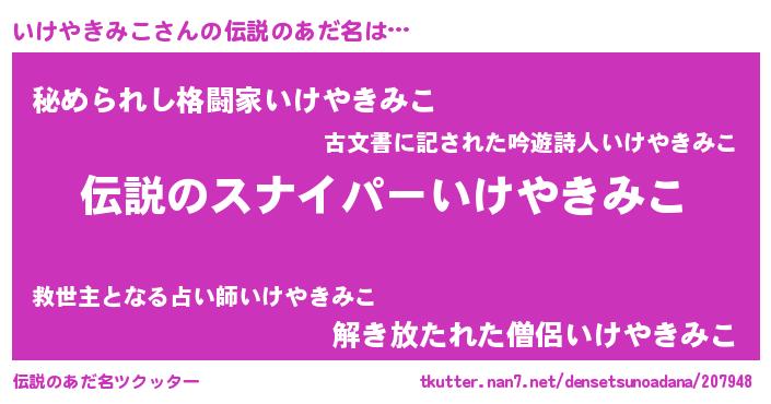 | 意味不明あだ名 | 『自称いけやきみこ』 |