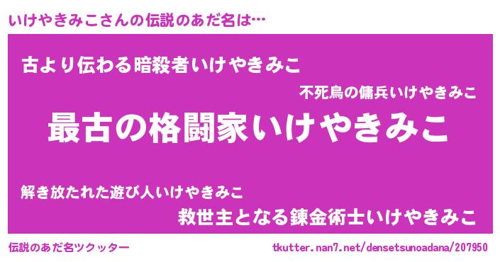 | 肩書あだ名 | 『いけやきみこ船長』『いけやきみこ中将』 |