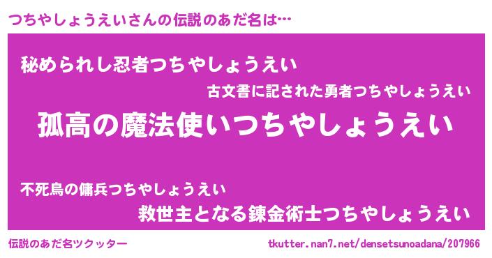 | 意味不明あだ名 | 『住所不定無職つちやしょうえい(8歳)』 |