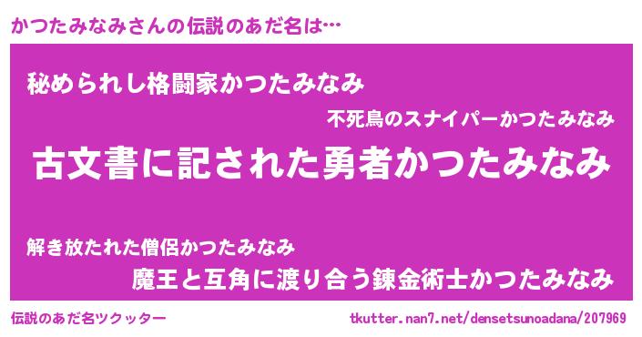 | 可愛いあだ名 | 『かつたみなみママ』『かつちー』 |