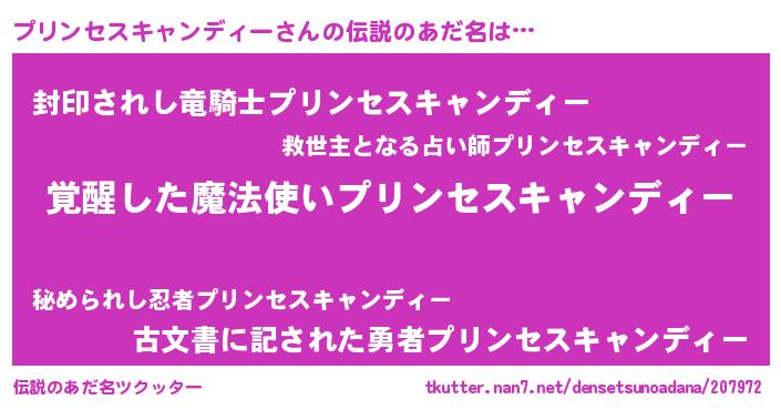 | ヒーロー風カッコイイあだ名 | 『究極戦士プリンセスキャンディー』 |