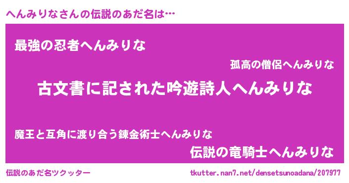 | 意味不明あだ名 | 『永久保存へんみりな』『自称へんみりな』 |