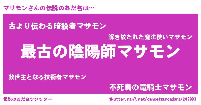 | ファンタジー風あだ名 | 『ゼマサトゥ』『エターナルマサモンー』 |