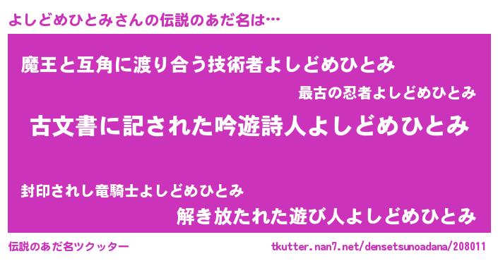 | ヘコむあだ名 | 『よしどめひとみ(笑)』『よしっちょ』 |