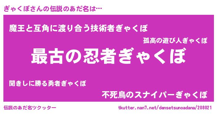 | ヒーロー風カッコイイあだ名 | 『サイバー戦士ギャクボ』『仮面ギャダー』 |