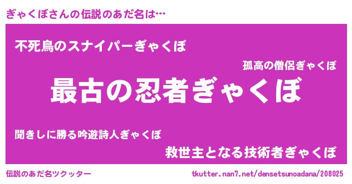| ヒーロー風カッコイイあだ名 | 『サイバー戦士ギャクボ』『仮面ギャダー』 |