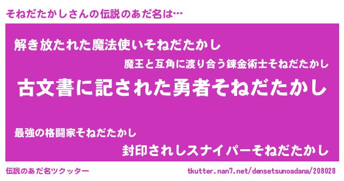 | 意味不明あだ名 | 『永久保存そねだたかし』 |