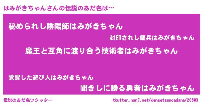 | 意味不明あだ名 | 『住所不定無職はみがきちゃん(8歳)』 |