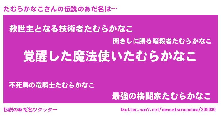 | 男性向けラノベタイトル風あだ名 | 『たむらかなこに滅ぼされるだけの簡単なお仕事です』 |