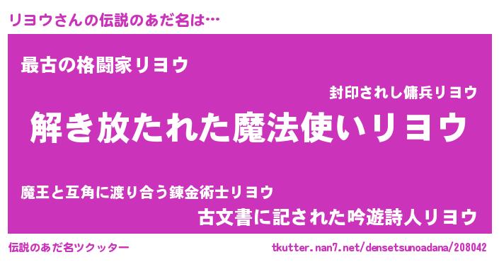 | ヒーロー風カッコイイあだ名 | 『銀牙騎士リヨ』『最強戦士リヨウ』 |