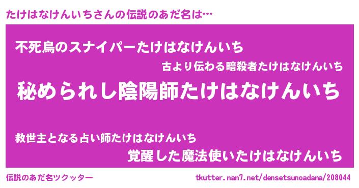 | ファンタジー風あだ名 | 『エターナルタケハナケンイチー』 |