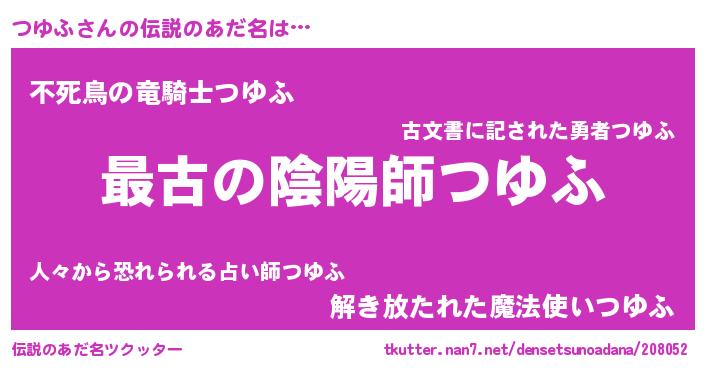 | ヒーロー風カッコイイあだ名 | 『ウルトラつゆふマン』『仮面ツユダー』 |