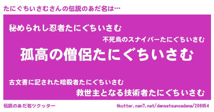 | ポケモン風あだ名 | 『タニゴンZ』『ヒタニグチイサム』 |