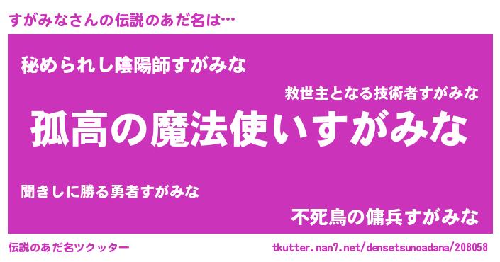 | 意味不明あだ名 | 『自称すがみな』『すがみなフォーエバー』 |