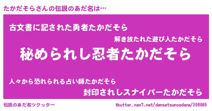 | 意味不明あだ名 | 『自称たかだそら』『永久保存たかだそら』 |