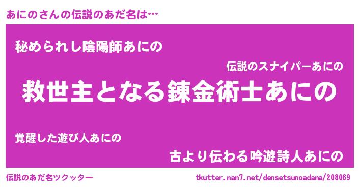 | ヘコむあだ名 | 『酢こんぶ』『あにの(小並感)』 |