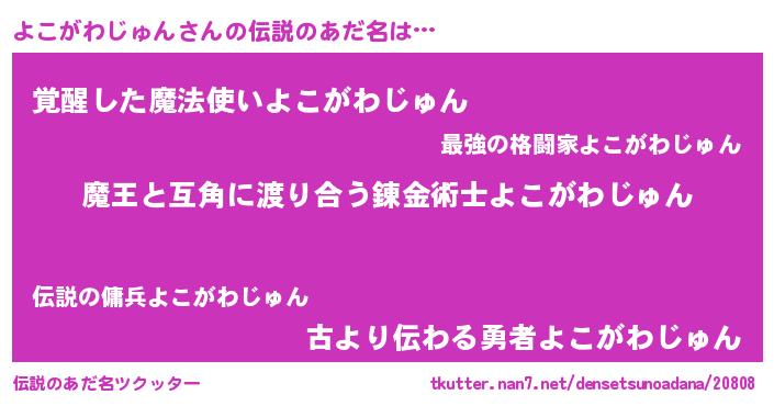 | 女子向けラノベタイトル風あだ名 | 『よこがわじゅん恋絵巻』 |