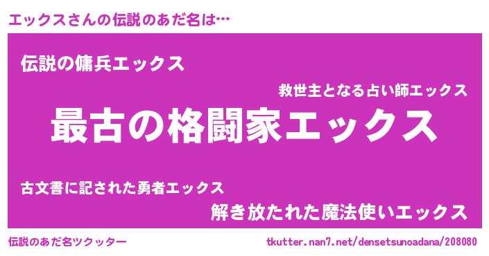 | 意味不明あだ名 | 『エックスフォーエバー』 |
