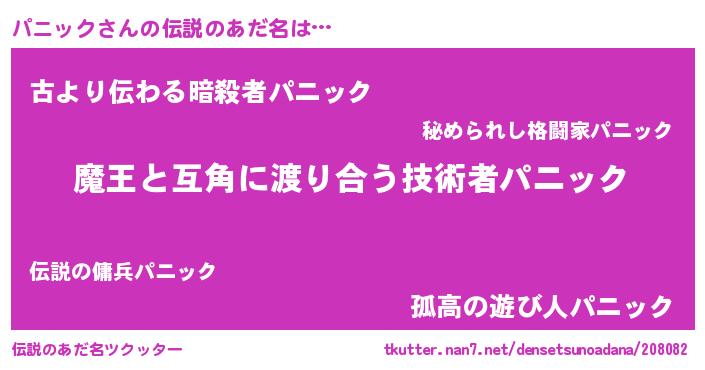 | 女子向けラノベタイトル風あだ名 | 『パニック恋絵巻』『闇のパニック』 |