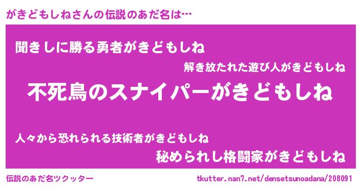 | 男性向けラノベタイトル風あだ名 | 『ガキドモシネアートオンライン』 |