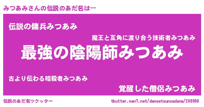 | ファンタジー風あだ名 | 『エターナルミツアミー』『ミツフェル』 |