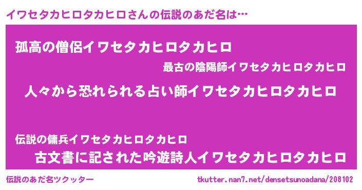 | 意味不明あだ名 | 『自称イワセタカヒロタカヒロ』 |