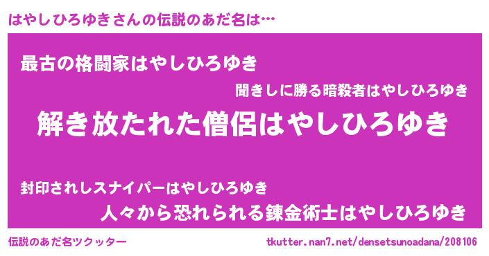 | 意味不明あだ名 | 『住所不定無職はやしひろゆき(53歳)』 |