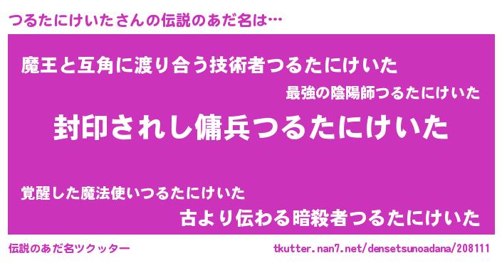 | ヒーロー風カッコイイあだ名 | 『スーパーツルタニケイタ』 |