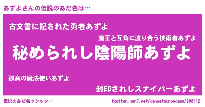 | 意味不明あだ名 | 『あずよフォーエバー』『永久保存あずよ』 |
