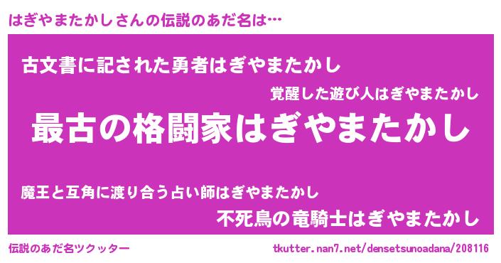 | ヒーロー風カッコイイあだ名 | 『ウルトラはぎやまたかしマン』 |