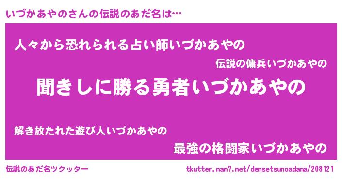 | 意味不明あだ名 | 『永久保存いづかあやの』 |