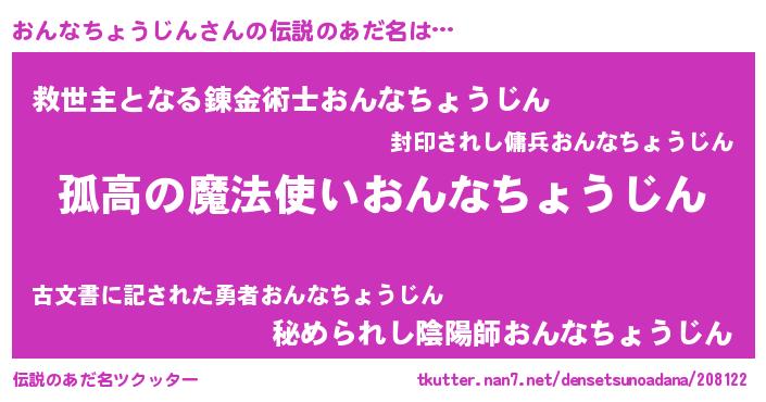 | 意味不明あだ名 | 『住所不定無職おんなちょうじん(5歳)』 |