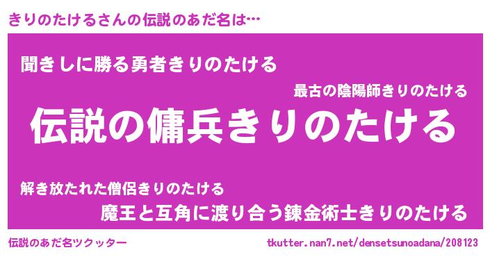 | ヒーロー風カッコイイあだ名 | 『スーパーキリノタケル』『仮面キリダー』 |