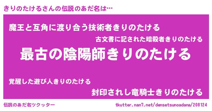 | 意味不明あだ名 | 『きりのたけるフォーエバー』 |