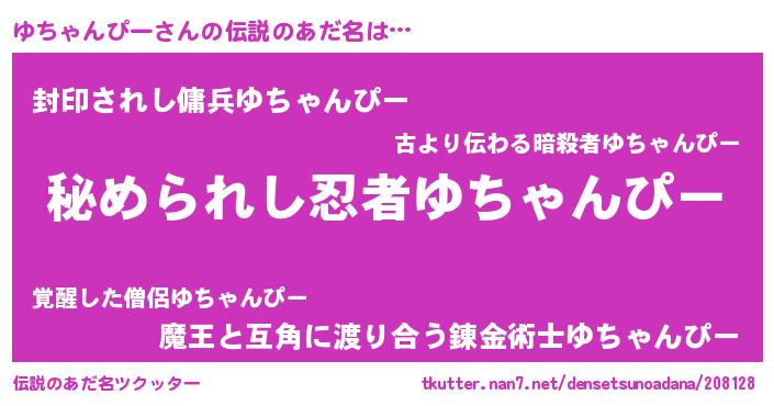 | 意味不明あだ名 | 『ゆちゃんぴーフォーエバー』 |