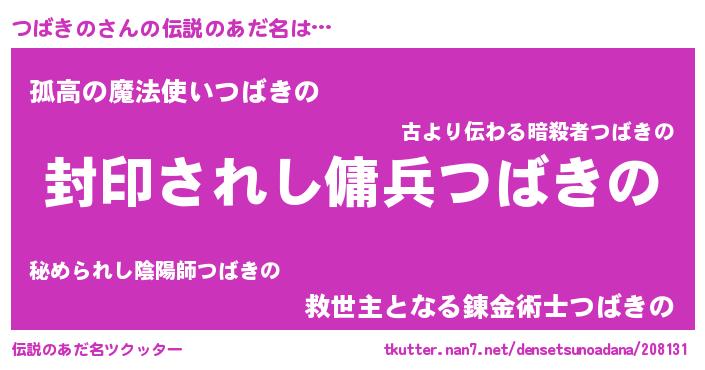 | ヒーロー風カッコイイあだ名 | 『スーパーツバキノ』『暗黒騎士ツバ』 |
